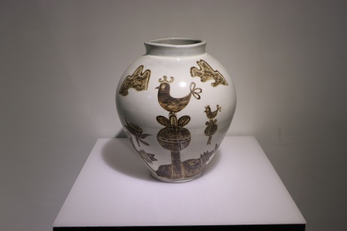 이천 도자기 명장 박래헌의 개인전 <철화민화>가 3 월 16일부터 3월 27일까지 12일간 통인화랑에서 열 렸다. 이번 전시는 철채로 그린 철화분청과 상감분 청한 작품 17점으로 구성됐다. 전시는 철사안료를 이용해 새, 연꽃, 구름 등 민화를 재조명한 철화분청 과 상감기법으로 산봉우리와 소나무를 패턴화해 문 양으로 새긴 상감분청 등 각기 다른 방법과 미감으 로 응용한 작품들을 한자리에 선보였다.