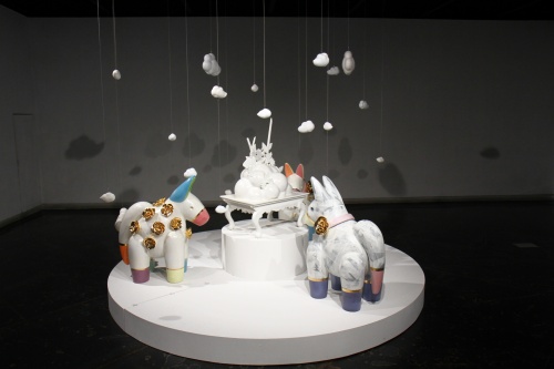 김재규 작가의 아홉 번째 개인전 <자연을 위한 만찬>이 지난 4월 16일부터 25일까지 7일 간 토포하우스에서 열렸다. 이번 전시는 자연과 인류가 공존의 원리를 바탕으로 조화를 이루게 하자는 주제로 도자설치를 선보였다. 망아지 혹은 상상의 동물 유니콘을 닮은 듯 한 동물과 구름 등 이상향을 연상시키는 공간 설치는 공간에서 마주봄으로 동물과 인간, 자연의 관계를 생각해보도록 의도했다. 작가는 동물의 존재와 아름다움을 보여주며 행복 의 염원을 담고자 했다.