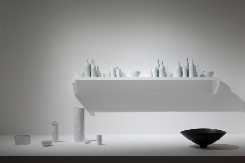 전시전경 (왼쪽)이용필 「겨울정물」, (가운데 선반)그웬 한스 피곳 「기억」, (오른쪽)루퍼트 스피라 「시가 쓰인 그릇」