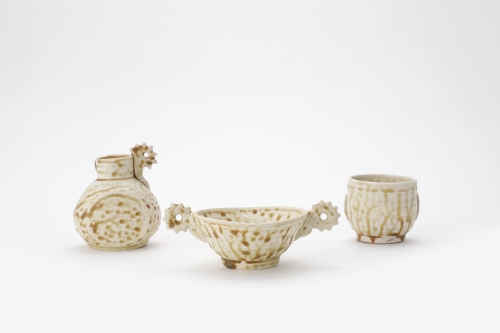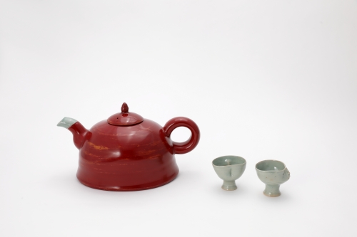「청자 옻칠 주자」 33×20×20cm | 백토, 청자유, 옻 | 2013 「청자 잔」 7×7×7cm내외 | 청자토, 청자유 | 2022