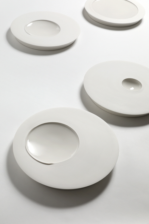 하얀 흙으로 만들어 구웠다고 모두 같은 백자白磁는 아니다. 백자 중에는 광맥에서 채굴한 덩어리 상태의 백토를 손 또는 물레로 제작한 것도 있고, 대량 도자 생산 현장처럼 백토 슬립을 틀에 부어 제작한 것도 있다. 고희숙 1972~ 은 석고 틀 안에 하얀 백토물 slip을 붓고 덜어 형태를 추출하는 방식으로 백자를 제작한다. 슬립 캐스팅은 주로 산업도자 현장에서 대량생산을 전제로 활용하는 생산 기법으로 ‘복제성multiple’이 특징이다. 그러나 작가는 다량多量, 동형同形의 물건이 아닌 ‘세상 유일한 물건’을 추구한다.