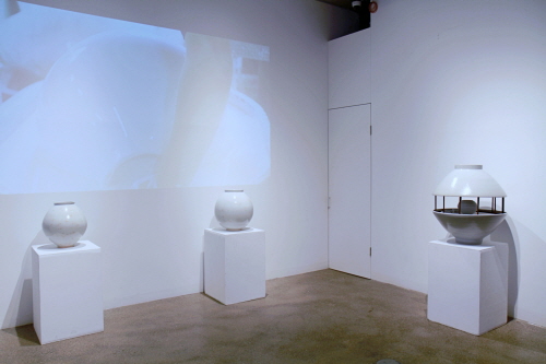 문찬석 도예가의 다섯 번째 개인전 <달다月茶>가 지난 9월 6일부터 12일까지 더스타갤러리에서 열렸다. 달다 月茶는 ‘달항아리를 천장이나 벽 등에 달다(걸다)’라는 뜻과 ‘달콤하고 향기롭게 달다’라는 중의적인 의미를 지닌다. 이번 전시는 오방색 중 백색이 지니는 무병장수의 염원을 담아 장작가마에서 구워낸 달항아리와 찻사발 27점을 선보였다. 작가는 흙과 불이 만나 우연하게 잉태되는 요변을 활용하여 달항아리의 우직한 형形과 포근한 색色을 표현했다. 찻사발은 여주 백토를 기반으로 진사, 덤벙분을 활용하여 전통적인 한국미와 투박한 멋을 더했다. 작가는 “이지러진 모습으로 혹은 어리숙함과 조금 모자란 듯 떠오른 달을 상상하면서 바라보는 관람객들이 행복에 충만하길 바란다.”라고 전했다