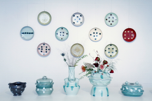 조현승 작가의 건국대학교 대학원 세라믹디자인전공 석사학위청구전 <O의 세계>가 10월 27일부터 11월 5일까지 피노크에서 열렸다. 이번 전시는 ‘몬스터의 진화, 꿈틀대는 자아’를 주제로 한 화기, 접시, 컵 등의 생활자기 작품 159점을 선보였다. 작가는 애니메이션 속 몬스터가 진화하는 모습에서 느껴지는 역동성에 주목해 작업의 밑바탕을 그렸다. 물레 성형으로 제작한 기물을 찌그러트려 형태의 다양성을 높이고, 각색의 유약으로 원을 그려 심리적 안정감을 의도했다. 캐릭터 일러스트, 미디어 작품도 함께 선보여 미완의 자아가 신성한 개체로 거듭나는 과정을 복합적으로 표현했다.