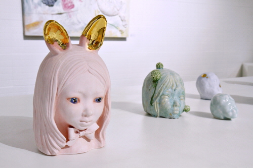 윤정선 작가의 개인전 <플로팅 가드너Floating Gardener>가 지난 12월 22일부터 31일까지 피노크 성수에서 열렸다. 작가는 본인을 정원사로 자처하며 정원을 만드는 행위는 낙원을 되찾기 위한 시도라고 말한다. 이번 개인전에서는 두상 표현에 집중한 소녀상, 도자기 부조를 캔버스에 장식한 회화 등의 작품을 전시해 기법·형식의 구애를 벗은 분방함이 돋보였다. 단색 파스텔톤 두상에 흘러내리는 듯한 유약 장식을 입혀 명징한 묘사가 흐려지고, 뭉개지는 연출을 가미했다. 경계에 놓인 시선으로 유토피아를 공상하고, 이를 감각의 상호작용을 통해 유기적으로 변모하려는 작가의 의도가 담겨있다.