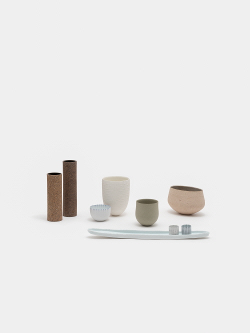 이번 전시는 솔루나크래프트의 ‘인큐베이팅 크래프트 메이커스’ 공모에 선정된 서울대학교 도예 전공 유세리, 윤정, 이문정, 진혜린, 최이재가 참여했다. ‘빌드 업’이라는 주제는 ‘여러 층을 쌓아 올려 부피를 만듦’의 물리적 정의와 ‘주요 내용 앞에 설명을 쌓음’이라는 은유적 표현으로 다섯 작가의 작업관을 관통한다. 유세리 작가는 우연적 효과를 의도하며 흙을 포개 연리를, 윤정 작가는 원시적인 색감의 점토 위에 점을 새겨 공空을 채워나갔다. 슬립을 겹겹이 발라 투광성 패턴을 만드는 이문정 작가부터 흙 타일을 촘촘히 쌓은 흔적을 드러내는 진혜린 작가, 일상의 토양을 개인 재료로 승화해 한 층씩 쌓아 올리는 최이재 작가의 작품을 선보였다.