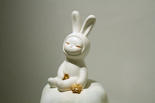 미야코 테라쿠라는 수공주조 기법과 슬립캐스팅으로 어린 아이 형상의 오브제 작업을 하며 희망과 치유의 목소리를 전달한다. 조각에 영혼을 불어넣듯 입술과 볼에 유약을 입혀 장밋빛 홍조를 띠게 하고, 유아적인 이목구비를 위해 다듬는 과정을 무수히 반복한다. 작가의 손에서 탄생한 어린 아이 캐릭터는 토끼 옷을 입고 구름에 떠다니거나, 불꽃의 타오르는 형상을 띠는 등의 만화적이고, 섬세한 연출이 돋보였다. 작가는 순수한 영혼과 그에 내재된 감정을 관람객에게 전하는 방식으로 치유의 경험을 선사하고자 한다.