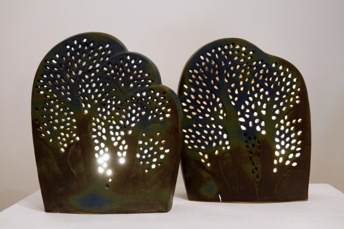 허민자 작가는 1971년 제주도에 입도한 이후, 도판화, 도등陶燈, 조형작품 등 다양한 접근으로 제주의 지질학적 특색과 향토 문화를 드러내는 작업을 이어 왔다. 이번 전시는 그의 조명 작업인 도등陶燈을 중점적으로 선보이는 전시로서 ‘불빛’에 내포된 위로와 기대의 메시지를 전한다. 제주 자연을 도식화한 형태에 구름문, 떡살문과 같은 전통 문양을 투각하거나 현무암의 기공을 통해 빛이 새어 나오도록 했다. 제주의 향토성이 짙게 기저를 이루고, 조명이라는 쓰임을 부각해 디자인과 실용을 양득하고자 한 시도가 돋보인다.