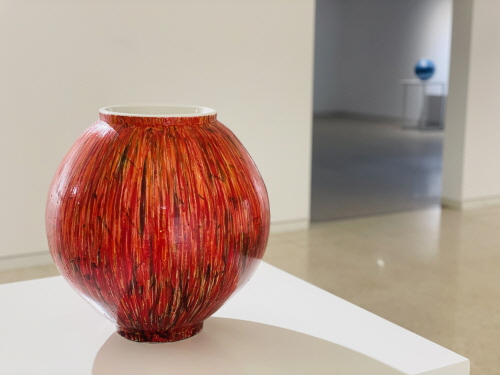 이번 박용수 개인전에서는 삶과 사랑의 조화로움을 표현한 달항아리, 매병, 평면도자 등을 포함한 작품 30여 점을 선보였다. 박용수 작가는 달항아리 표면에 세라믹 안료로 덧칠한 후, 환원 소성하여 색면 추상을 조형 요소로 활용하는 작업을 이어 왔다. 예리한 필선을 중첩시켜 면을 구성하고, 요철의 거친 질감을 남겨 태토 본연의 미감을 유지했다. 또한 업다지의 접합선이 은은하게 드러난 백자 대호, 색이 번지는 과정을 기록한 평면도자 등 작가의 표현론적 자유도가 돋보이는 전시로서 간결한 색채로 빛과 그림자, 사물의 연속성을 재조합해 제시했다.