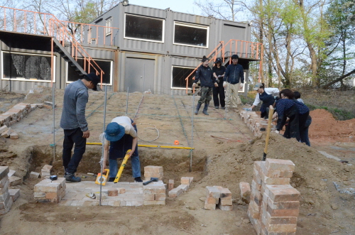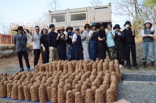 그래서 시간은 좀 소요되더라도 전통 방식대로 통가마를 짓기로 했다. 그리고 망댕이통가마를 짓게 된 결정적인 이유는 요즘 물가 상승으로 내화벽돌 구입 비용이 만만치 않다는 것이다. 학생들이 망댕이가마를 구경해 보지 못한 인원도 있어서 이번 기회에 직접 지어 보고 손수 만든 망댕이로 축요를 하게 되면 남다른 의미가 있을 것 같아서 본 강의를 기획하게 되었다. 현재까지는 굴삭기로 터 닦기와 측면 돌담 쌓기 등 기초공사를 마무리하고 있기 때문에 학생들의 참여가 적었다. 4월 중순부터 본격적인 축요가 진행됐고, ‘가마구조와 열역학특론’을 수강하고 있는 명지대학교 세라믹 디자인공학과 대학원생 17명이 축요에 참여 중이고, 타 대학교 도예과 교수와 학생, 관심 있는 일반 도예가들이 참여 의사를 밝혀 왔다.