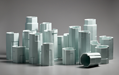 수직과 수평의 선적인 요소에서 비롯된 직관, 청백색 베슬의 군집이 도시적 표상으로 상을 맺는다. 이반디는 물레로 원통을 빚고, 8각 혹은 10각으로 면을 깎아 최소의 조형 기제만으로 새로운 표면을 생성한다. 기본 투명 유약에 나무재를 소량 첨가해 냉랭한 도시의 색채적 고증을 끌어내기도 한다. 각 기물마다 작가의 임의에 의한 다양한 표현이 드러나지만, 쓰임을 지닌 공예라는 교집합으로 재차 귀결되는 환원성을 형용한다. 구조적 변형물의 총체를 펼쳐 보이고, 곧게 뻗는 양각의 경계를 감각적으로 표현해 구상과 비구상을 넘나든다