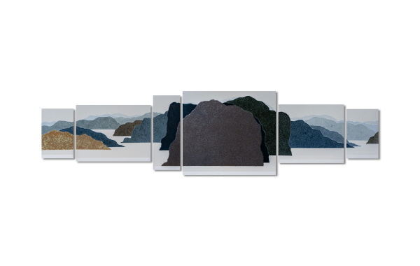 로 풀어낸 도자 산수 작품을 선보였다. 백토로 만든 사각 평판에 흙물을 바르