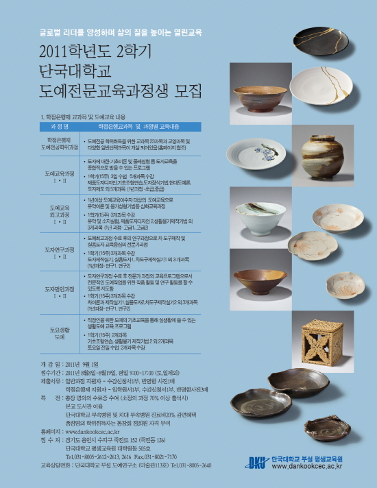 2011학년도 2학기 단국대학교 도예전문교육과정생 모집