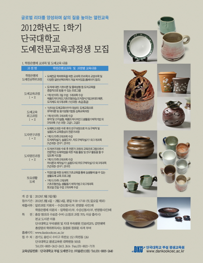 2012학년도 1학기 단국대학교 도예전문교육과정생 모집