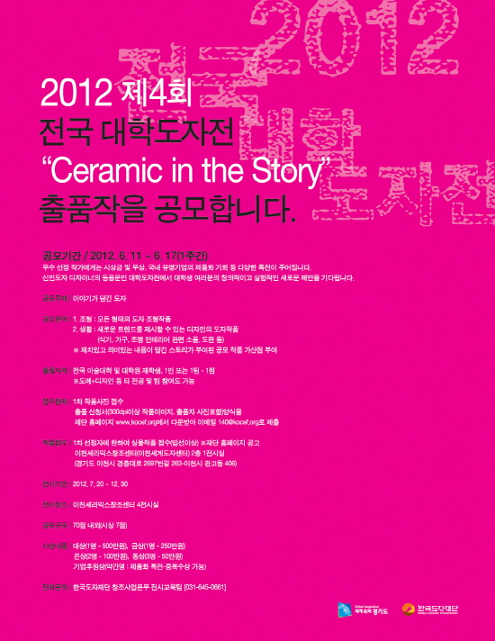 경상남도와 김해시가 주최하고 김해도예협회와 김해분청도자박물관이 주관한 이 지난 9월 최종 수상작을 발표했다.대상_ 강창성 「시간의 결」분청사기의 본 고장인 김해시에서 전통과 현대의 표현 방법이 다양한 분청 미의 계승 발전과 분청도자문화의 확산과 보급, 도예가들의 창작 고취를 위해 매년 개최하고 있는 이번 공모에는 총 109.