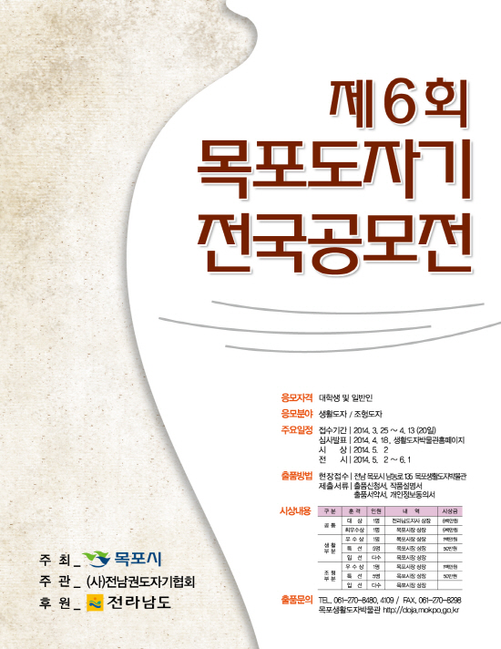 - 경상남도와 김해시가 주최하고 김해도예협회와 김해분청도자박물관이 주관한 이 지난 9월 최종 수상작을 발표했다.대상_ 강창성 「시간의 결」분청사기의 본 고장인 김해시에서 전통과 현대의 표현 방법이 다양한 분청 미의 계승 발전과 분청도자문화의 확산과 보급, 도예가들의 창작 고취를 위해 매년 개최하고 있는 이번 공모에는 총 109.