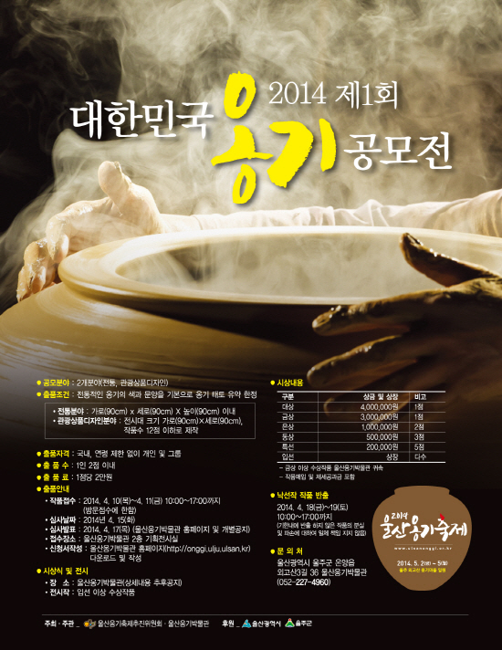 - 경상남도와 김해시가 주최하고 김해도예협회와 김해분청도자박물관이 주관한 이 지난 9월 최종 수상작을 발표했다.대상_ 강창성 「시간의 결」분청사기의 본 고장인 김해시에서 전통과 현대의 표현 방법이 다양한 분청 미의 계승 발전과 분청도자문화의 확산과 보급, 도예가들의 창작 고취를 위해 매년 개최하고 있는 이번 공모에는 총 109.