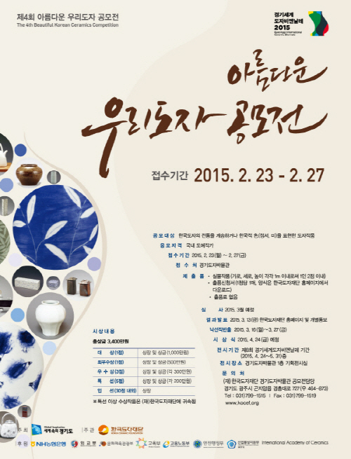 - 경상남도와 김해시가 주최하고 김해도예협회와 김해분청도자박물관이 주관한 이 지난 9월 최종 수상작을 발표했다.대상_ 강창성 「시간의 결」분청사기의 본 고장인 김해시에서 전통과 현대의 표현 방법이 다양한 분청 미의 계승 발전과 분청도자문화의 확산과 보급, 도예가들의 창작 고취를 위해 매년 개최하고 있는 이번 공모에는 총 109.