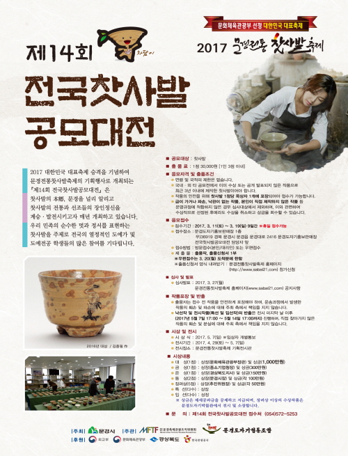 - 경상남도와 김해시가 주최하고 김해도예협회와 김해분청도자박물관이 주관한 이 지난 9월 최종 수상작을 발표했다.대상_ 강창성 「시간의 결」분청사기의 본 고장인 김해시에서 전통과 현대의 표현 방법이 다양한 분청 미의 계승 발전과 분청도자문화의 확산과 보급, 도예가들의 창작 고취를 위해 매년 개최하고 있는 이번 공모에는 총 109.