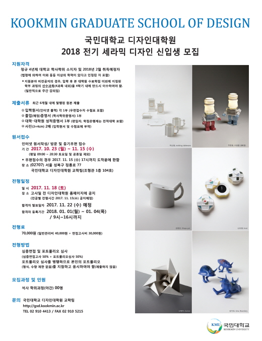 국민대학교 디자인대학원_2018 전기 세라믹 디자인 신입생 모집(2017.10.23~11.15)