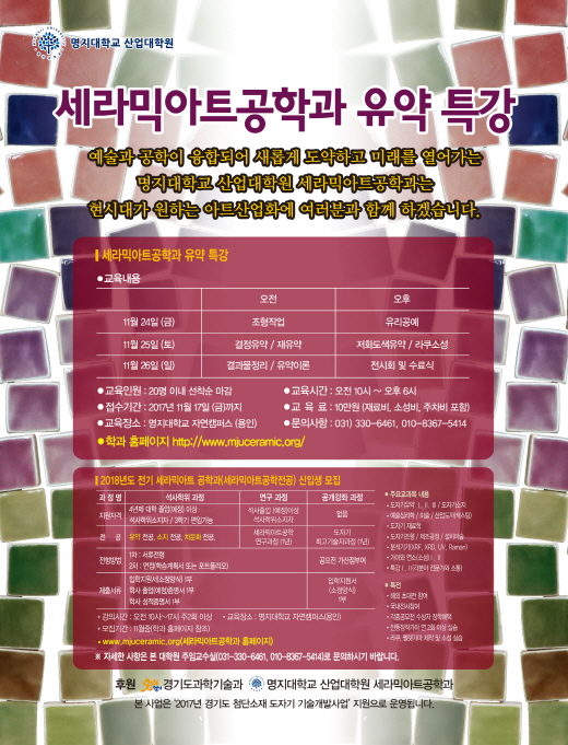 명지대학교 세라믹아트공학과 유약특강(2017.11.24~11.26)