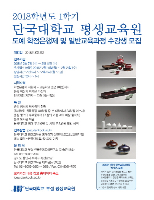 2018학년도 1학기 단국대학교 평생교육원 모집(2018.2.7~2.14)