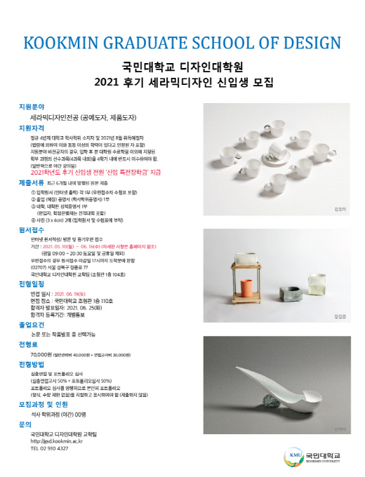 2021 국민대학교 세라믹디자인 신입생 후기 모집(5.10~6.16)