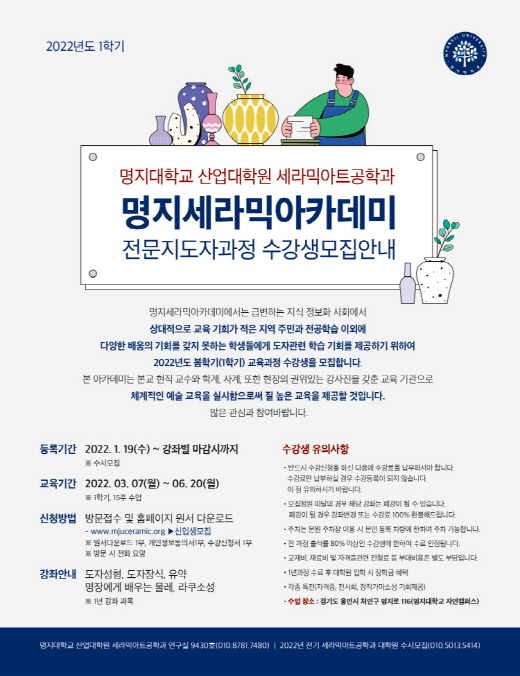 명지세라믹아카데미 수강생모집안내(1.19 ~ 마감시)