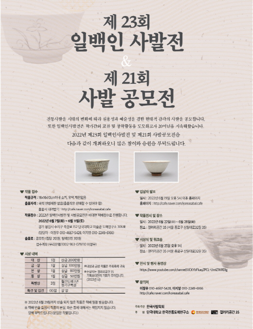 제23회 일백인 사발전 & 제21회 사발 공모전(6.7~6.11)