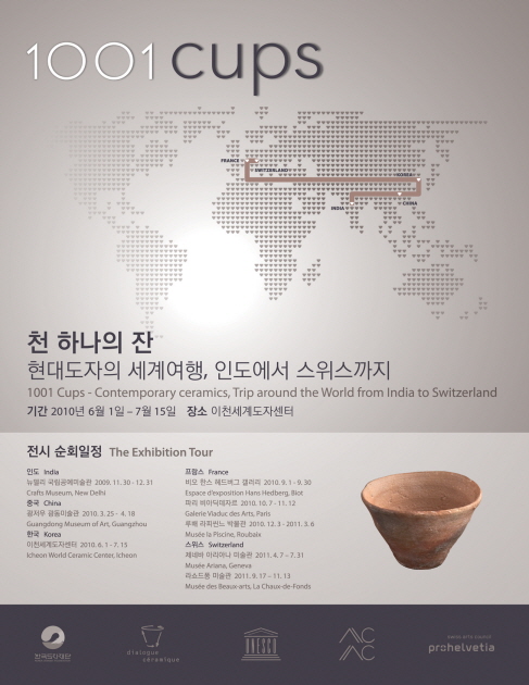 세계 각지의 도예작가들의 다양성과 창조력을 한눈에 살펴볼 수 있는 국제적이면서도 지역적인 이번 순회전은 같은 기능과 형태를 가진 그릇이 문화와 재료에 따라 얼마나 풍부하고 다양하게 표현될 수 있는지를 보여준다. 전시기간 동안 특별제작된 다큐멘터리 영화가 상영되며 한국도자재단과 디알로그 세라미끄 기획팀의 주최로 지역작가와 연계한 워크숍이 진행될 예정이다. 천 하나의 잔은 한국 전시 후 프랑스 비오Biot, 파리Paris, 루배Roubaix를 거쳐 스위스 제네바Geneva와 라쇼드퐁La Chaux-de-Fond을 순회한 뒤 여행의 출발지였던 인도 뉴델리 공예박물관에 영구히 자리한다.