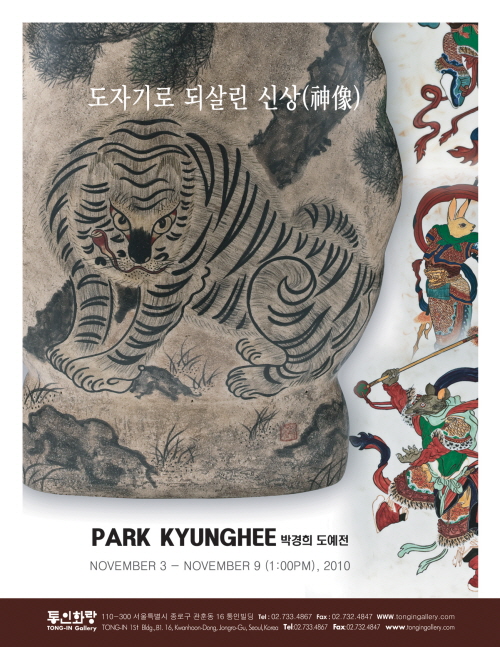 동양철학을 근간으로 독자적인 도자조형의 세계를 펼치고 있는 박경희 작가의 <도자기로 되살린 신상>전이 열린다. 이번 전시에서는 해마다 그 해를 상징하는 동물인 12지신상을 통해 민화 속에 면면히 뿌리 내려온 우리의 정서를 도자기에 음양오행의 색을 입혀 표현한 작품을 선보인다. 12지신상은 길흉화복을 주관하기도 하지만 우주질서와 생로병사의 일정불변의 법칙을 나타내기도 한다.