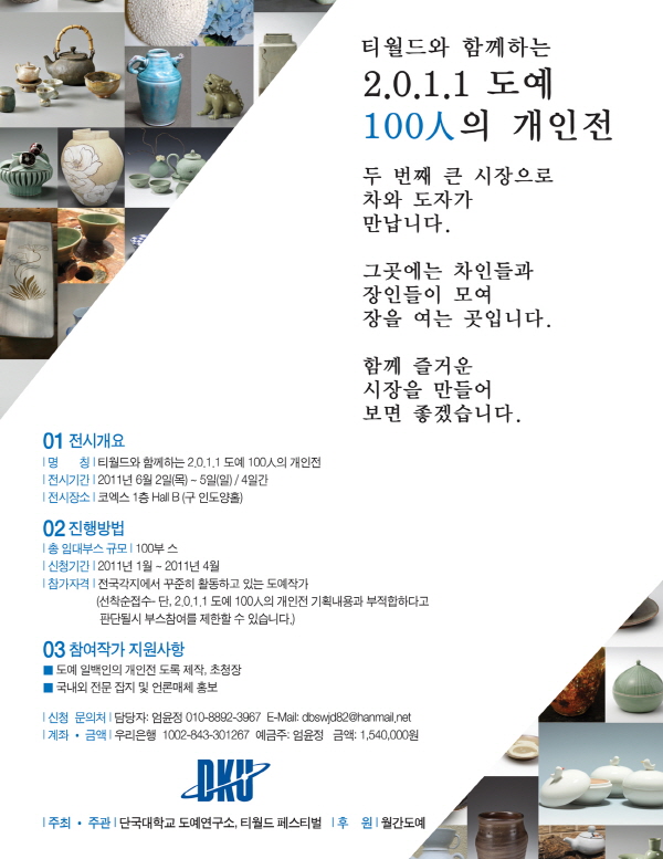 명칭:티월드와 함께하는 2011 도예 100人의 개인전