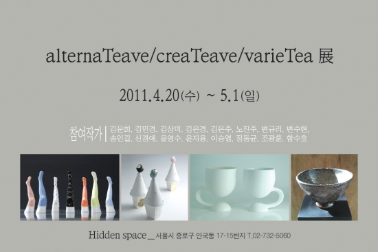 차도구와 관련된 모든 것을 선보이는 건국공예가회의 <alternative, creative, variety>전이 열린다. 하이브리드 신조어인 이번 전시주제는 대안적 차도구, 창조적 차도구, 다양한 차도구로 해석할 수 있다. 새로운 볼꺼리와 이야기꺼리를 펼쳐보일 이번 전시에는 김문희 김민경 김상미 김은주 김은경 노진주 변규리 변수현 송인길 신경애 윤영수 윤지용 이승엽 정동균 조광훈 함수호가 참여한다.