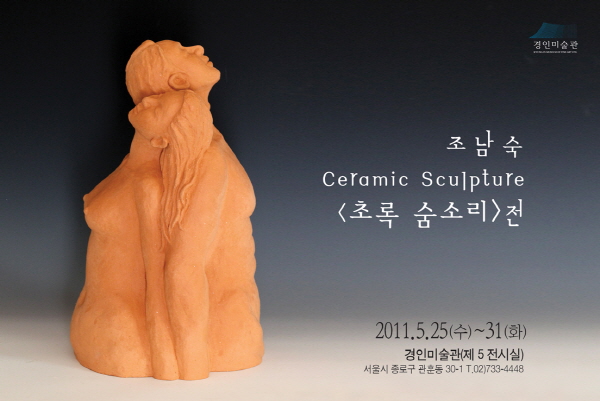 조남숙 <푸른 숨소리>전2011.5.25~5.31 서울 경인미술관조남숙이 여인상을 제작하는 이유는 표정으로 감정을 전달할 수 있다는 매력 때문이다. 손끝에 메달린 그리움은 부드러운 점토에 의해 재창조된다. 예술을 한다는 것은 끊임없이 자신을 담금질하는 멀고도 험한 길이다. 때론 자신을 네모난 상자에 가두는 오류를 범하기도 하지만 있는 그대로의 감정에 충실하려 노력한다. 그의 작품에서 영혼의 울림을 찾아보자.02.733.4448