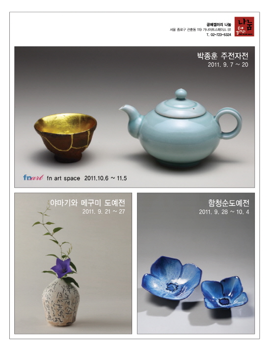 - 9. 24. ~10. 10. 통인화랑빛을 탐구해 아름다움을 사유하다반세기가 넘는 역사를 지닌 통인화랑은 깊은 시간 동안 시대적 작가와 작품을 발굴하고, 한국 현대미술의 새로운 영역을 보여주고 있다. 미래지향적인 전시를 선보이기 위해 노력하는 통인화랑은 국내외에서 활발하게 활동하고 있는 도예 작가들이 참가했던 세라믹디자인전공 동문전.