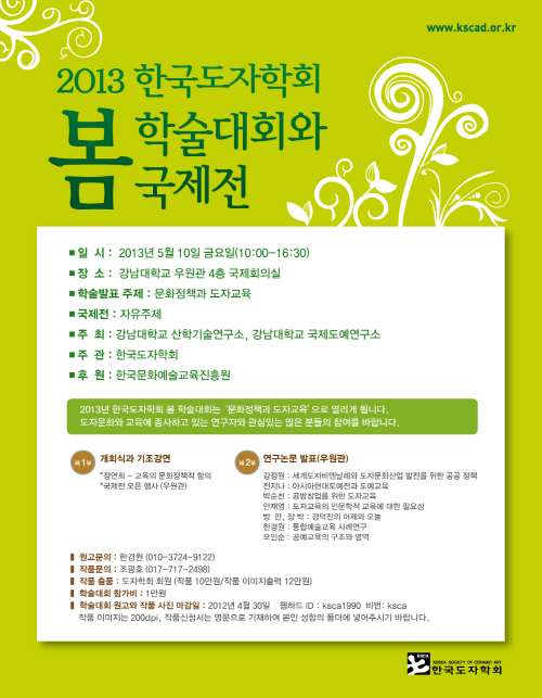 - 경상남도와 김해시가 주최하고 김해도예협회와 김해분청도자박물관이 주관한 이 지난 9월 최종 수상작을 발표했다.대상_ 강창성 「시간의 결」분청사기의 본 고장인 김해시에서 전통과 현대의 표현 방법이 다양한 분청 미의 계승 발전과 분청도자문화의 확산과 보급, 도예가들의 창작 고취를 위해 매년 개최하고 있는 이번 공모에는 총 109.