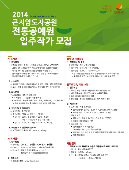 2014곤지암도자공원 전통공예원 입주작가 모집