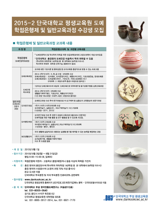 2015-2 단국대학교 평생교육원 도예 학점은행제 및 일반교육과정 수강생 모집