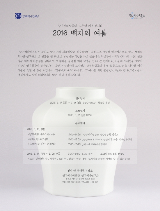 양구백자박물관 10주년 기념 전시회 2016 백자의 여름