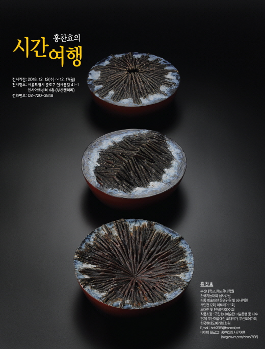 - 10. 10. ~10. 25. 부산 조이갤러리(해운대 달맞이길)반복과 차이가 만들어 낸 중첩된 세월부산 경성대에서 도자공예로 학부와 석사를 마치고 부산을 중심으로 국내외에서 왕성한 활동을 이어온 도예가 정맹룡의 개인전이 열렸다. 그간 그는 백토를 바탕으로 여러 가지 색소지를 이용해 다양한 기법의 기물을 선보이며 전통과 모던의 양식이 어..