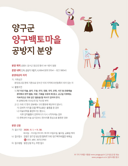 양구백토마을 공방지 분양(20.11.1~11.30)