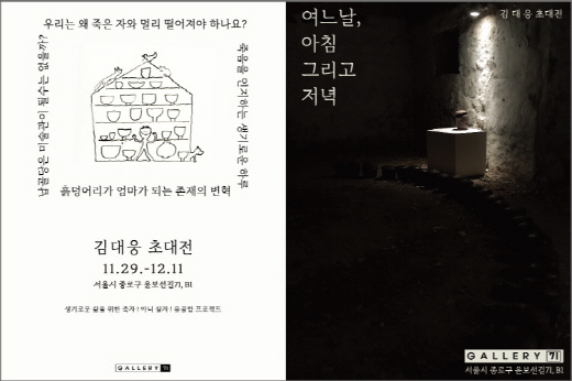 김대웅 초대전기 간 : 11.29 ~12.11장 소 : 갤리러71 _ 서울시 종로구 윤보선길71, B1https://www.instagram.com/gallery71seoul