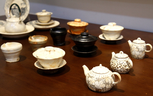 ‘오작도’는 찻사발을 둘러싼 여섯 작가의 독자적 문법을 포괄하는 도예가 그룹으로서, 이번 전시는 소규모 다회를 즐기는 차인들의 최근 경향을 반영해 미니어처 다관과 다완, 숙우 등을 위주로 구성했다. 송춘호 작가는 나뭇잎 심볼을 호쾌한 필선으로 긁어 낸 박지분청 다완으로 소담한 운치를 더했다. 김태훈 작가는 암갈색 옻칠과 금 시유의 이원적 대비를 드러냈고, 최윤영 작가는 손으로 눌러 빚은 양이잔에 엇비슷한 도형의 배열을 그려 넣어 묘사했다. 또한 이부원 작가는 까치회령의 이중시유 구조로 흘러내리는 흑백의 번짐을 부각시켜 회령도자의 미감을 승화시켰다. 자욱한 구름이 낀 산세를 연상케 하는 이효림 작가의 청화분청, 단정한 결 문양을 툭툭 찍어 시문한 황승욱 작가의 분청 다완까지 각 요장이 확장해 온 차도구 양식의 감각과 그 변칙을 일견할 수 있었다.