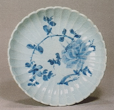 사진6) 「백자청화장미무늬접시」(오사카시립동양도자미술관)