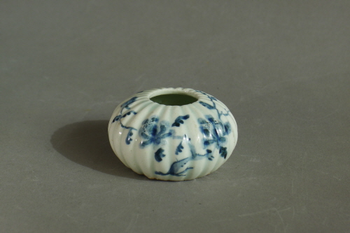 사진1) 「백자 청화장미넝쿨무늬 작은 항아리」 조선시대. 입지름: 2.4cm, 높이: 3.3cm, 바닥지름: 4.3cm