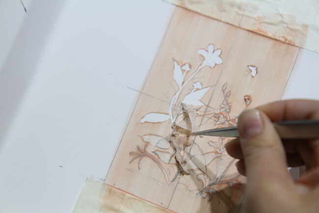 12 그림이 겹쳐져 형태가 선명하는 않은 부분과 어둡게 채색된 부분은 디자인칼로 긁어 세밀하게 표현하고 정리해 준다.