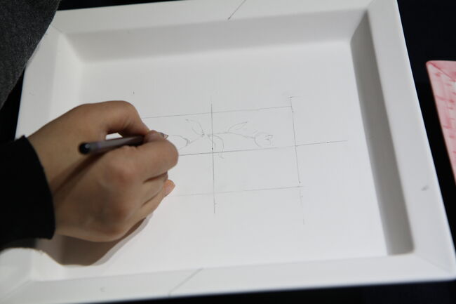 2 초벌기물의 상하좌우를 자로 재 기물의 중심에 맞춰 직사각형을 그린다.
