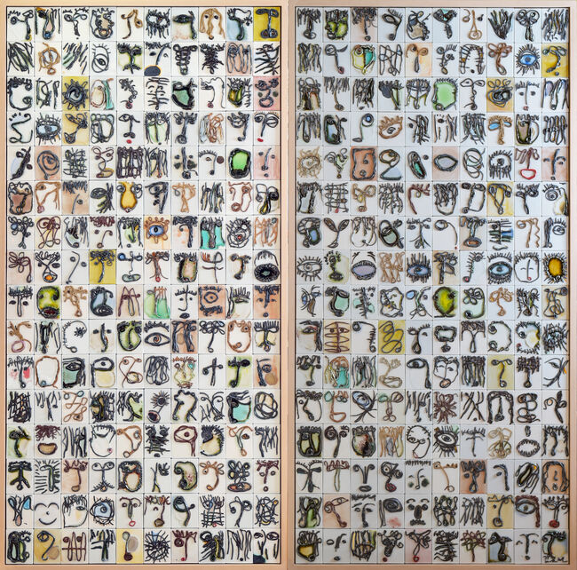 「대합창」 240×240cm | 백토, 흑토, 유리, 환원소성 | 2012