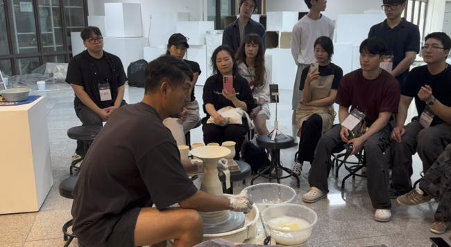간담회 다음날부터 4일간, 도예과 실기실과 미술관에서 현대도예 작가 7인(김종훈, 문병식, 박제덕, 박순관, 여선구, 이강효, 이인진)과 함께하는 워크숍이 이어졌다. 참여 작가의 작업 과정을 관람하고 단순히 기술을 전하는 관계를 넘어, 작가와 학생들이 직접 재료를 만지고 빚고 소통하며 ‘공동창작자’로서 서로의 작업 방식과 태도를 공유하는 자리였다. 작가의 인생 이야기와 작업 철학 등 전시에서는 접할 수 없는 내용들과 함께 작가의 축적된 작업 기술을 직접 체험하고 서로 이야기를 나누는 과정 속에서 학생들의 상기된 표정들이 무척 인상 깊었다. 특히 단국대 스타 도예가로 불리는 문병식 작가의 워크숍 참여와 박순관 작가의 라쿠 시연은 이번 워크숍 중에서도 단국대 동문의 약진과 도예과 내에서의 첫 라쿠 시연이라는 점에서 좀 더 특별한 의미를 지닌 듯 하다.