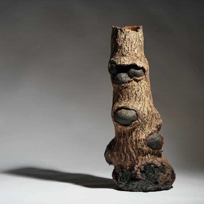이번 전시에서 조윤득 작가는 제주 곶자왈에서 받은 영감을 도자조각으로 형상화한 작업들을 선보였다. 오랫동안 제주 돌과 숲의 조형성을 탐구해온 작가는 돌과 나무가 유기적으로 얽혀 생명력을 발현하는 순간을 20여 점의 조형 작품으로 풀어냈다. 작품들은 돌에서 나무가 솟고, 나무를 관통해 돌이 자라는 원초적 생명성을 드러내며 자연의 공존과 생존의 서사를 시각화한다. 또한 나무를 의인화한 조형은 둘이면서 하나가 되는 조화의 원리를 은유적으로 제시한다. 《숲이 전하는 말》은 자연이 축적해온 시간, 생명의 의지, 그리고 존재의 관계성을 도자를 통해 재해석한 전시로, 자연의 생태와 생명성에 대한 감수성을 환기시켰다.