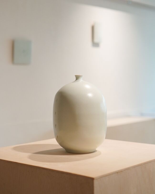 16 아카이브에서 열린 이규호의 첫 개인전 《결함의 정원》은 완전함을 향한 기대와 예기치 않은 결과 사이에서 생성되는 도자의 풍경을 탐색한 전시이다. 작가는 정원을 가꾸듯 작업 과정에서 발생하는 우연과 변화를 배제하지 않고, 결함으로 인식되기 쉬운 요소를 조형의 가능성으로 전환했다. 이번 전시에서는 샌드블라스트 중심의 기존 작업에서 벗어나, 철화상감을 통해 흐르는 선과 점의 이미지를 확장하며 도판 작업으로까지 전개했다. 가마 안에서 생성된 추상적 흔적과 빙결·텍스처 효과는 표면의 긴장감을 형성했고, 작품들은 개별성을 유지한 채 유기적 관계를 맺으며 배치되었다. 이는 자연을 재현하기보다 물성과 과정이 드러나는 조형적 장면을 제시한다.
